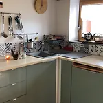 Gite Chalet Paisible Deconnexion Totale has an equipped kitchenette with tea and coffee making facilities, an oven, and kitchenware for a comfortable stay.